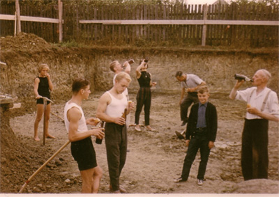 Neue Versuche unternahmen die Vorstände Horst Schmidt und Eduard Weichmann. Doch erst am 6. Sept. 1959, in einer außerordentlichen Mitglieder-Versammlung, konnten konkrete Bau- und Finanzierungspläne vorgelegt werden. Auf Antrag von Oberturnwart August Först wurden die Mitgliedsbeiträge um 100 Prozent erhöht und eine Bausteinakton ins Leben gerufen. Ein geeignetes Grundstück konnte vom Ehrenvorsitzenden Michael Hempfl ing und von Frau Käthe Först erworben werden.